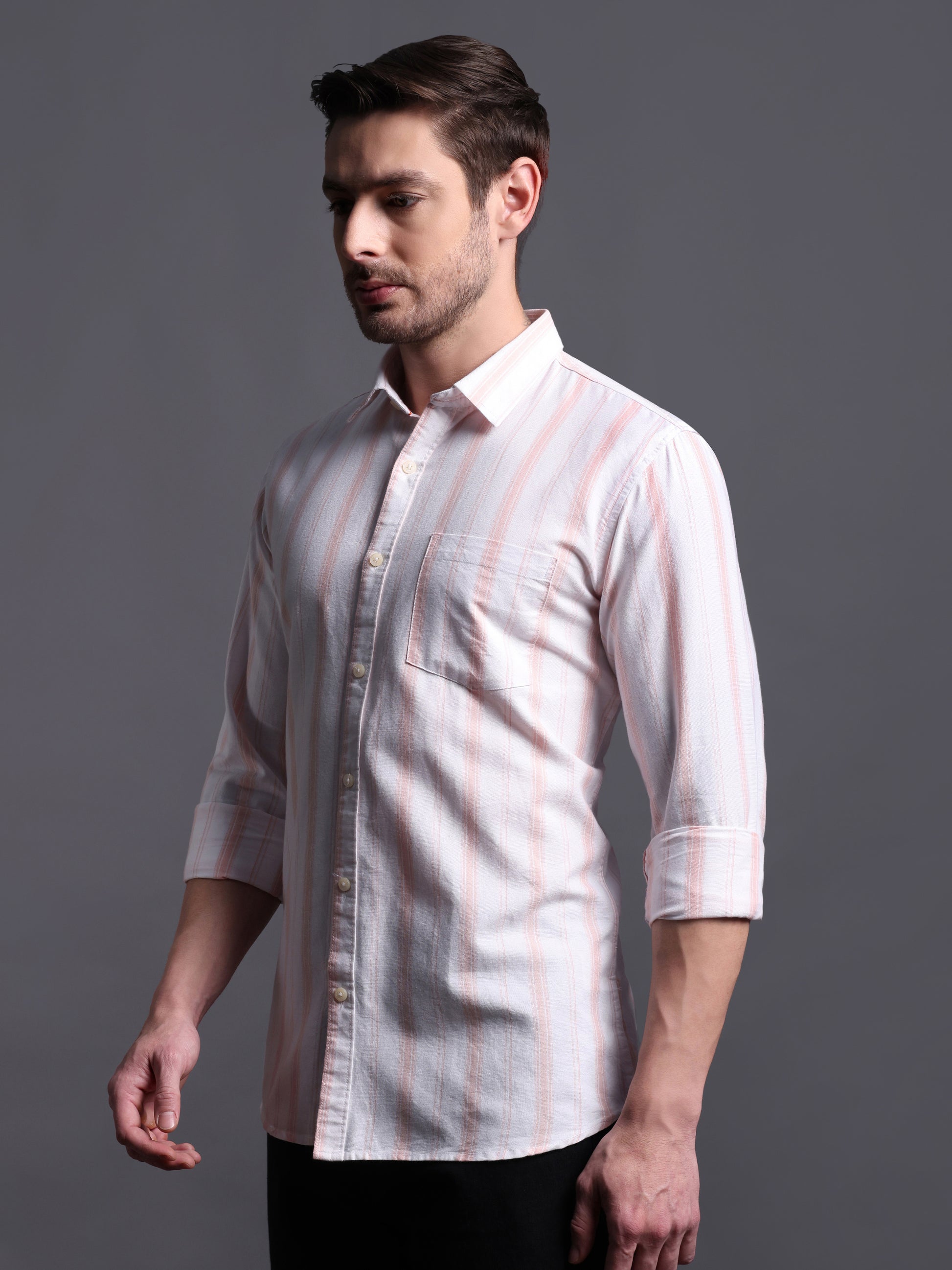 - It has White and Light Orange Stripe. Perfect for office casual